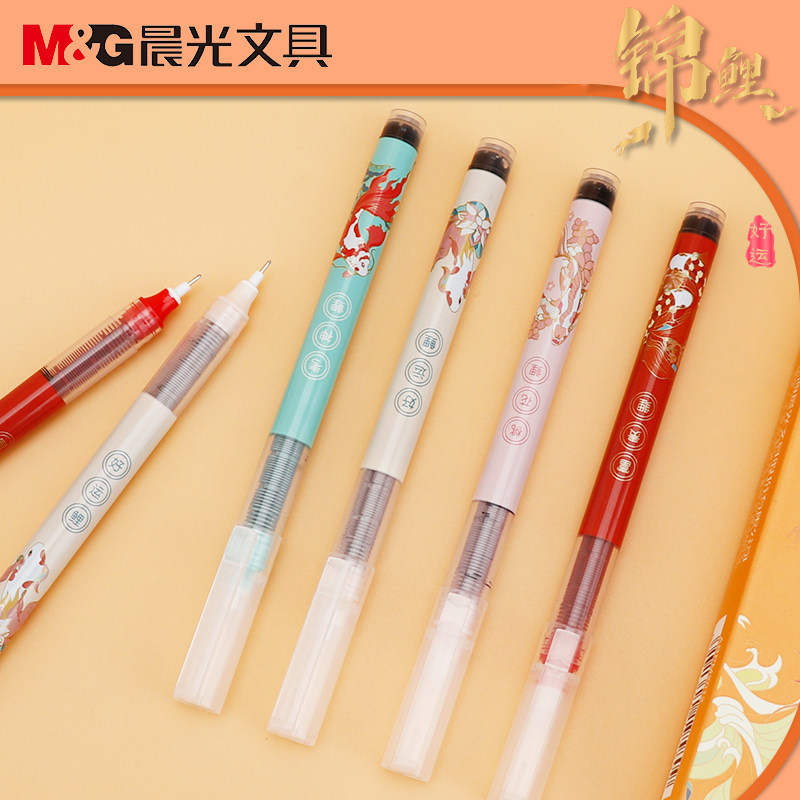 Morning Light Brocade Carp High Face Value Middle Sex Pen Black Girl Child Minor Fairy student with smooth and cute look good and good use with pull-out cover Straight liquid style Ballpoint Pen Gift Box Gift Affordable stationery exam special