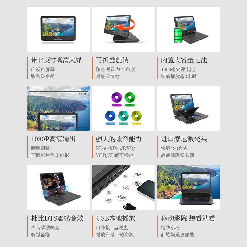 GIEC BDP-G380 14 inch Mobile Blu-ray player Portable All-in-one HD player DVD