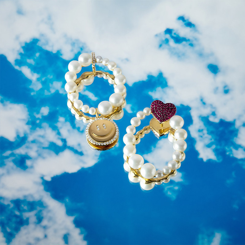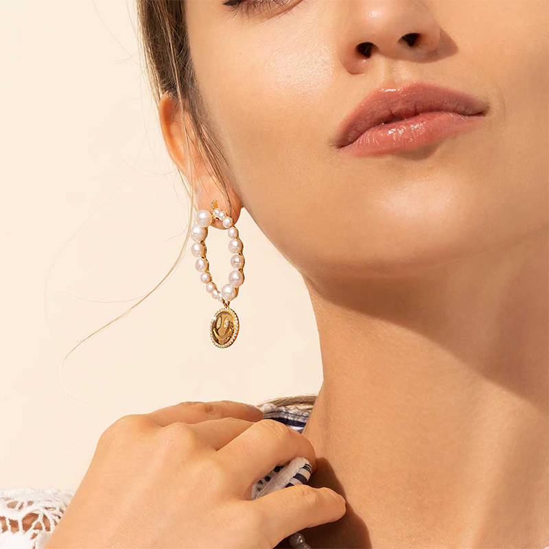 APM Monaco love smiley face asymmetric pearl earrings women's new trendy earrings fashion avant-garde