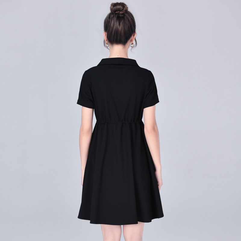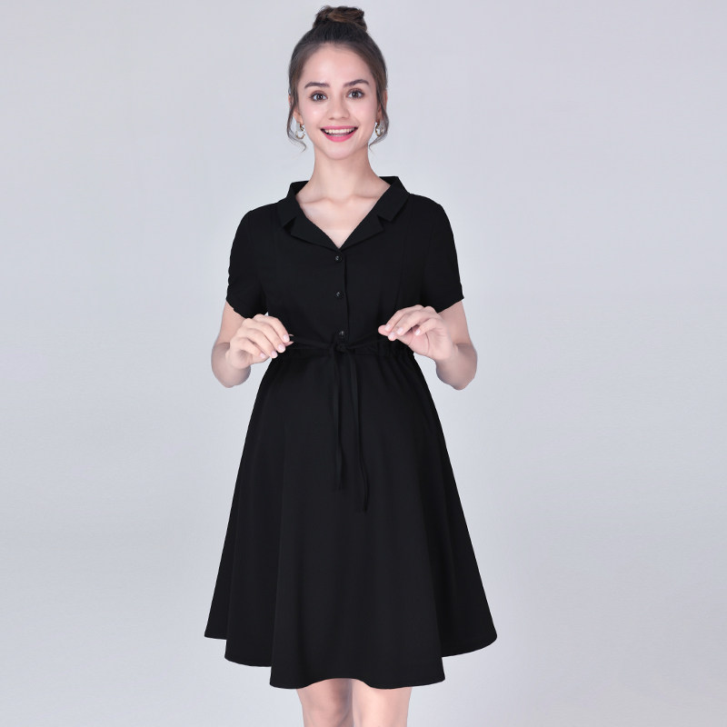 Pregnancy Woman Dress Summer New Fashion Middle Long Version Black Pregnant Woman Foreign Dress Women Career Interview Tooling Short Sleeve Dress