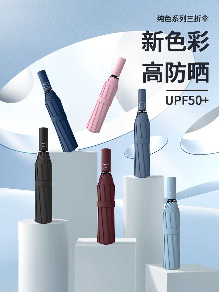 Fully automatic umbrella female clear and rain dual-use folding umbrella large number and strong male beach umbrella anti-UV sunshade custom
