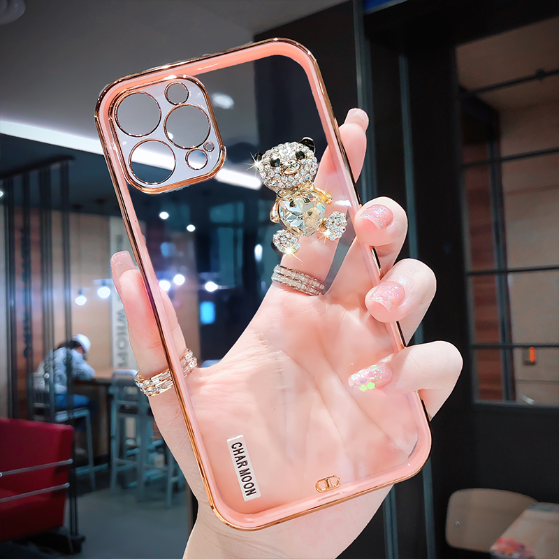 Apple 12promax mobile phone protection shell luxurious water drill female section iPhone12 lens full bag small bear ultra-thin transparent silicone anti-fall protective sleeve 12pro personality creative internet red tide card soft