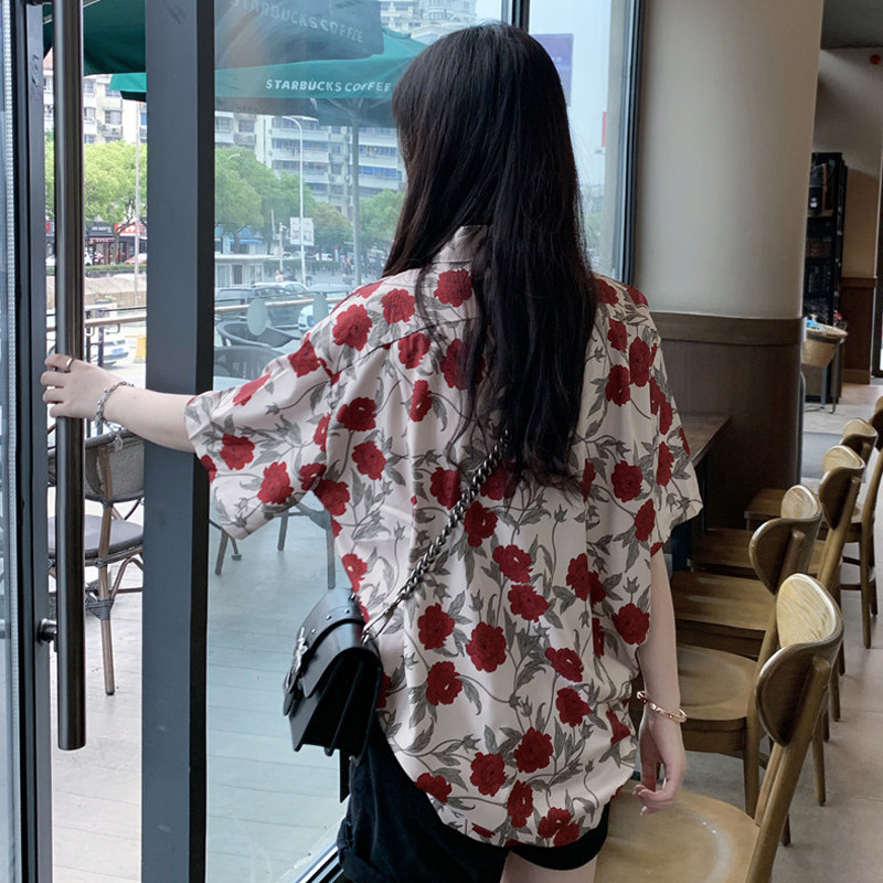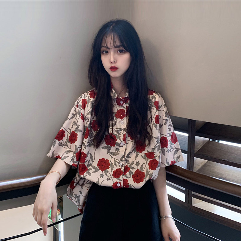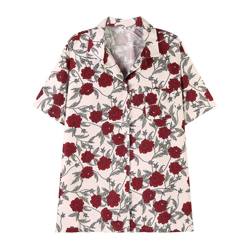 Port Wind Printed Short Sleeve Shirt Woman Design Senses Breaking Flowers Do N't Get Blouses Blouses Summer Loose Fashion Lazy Wind Shirt