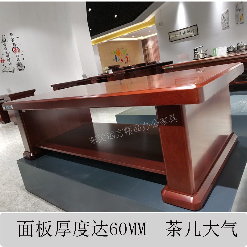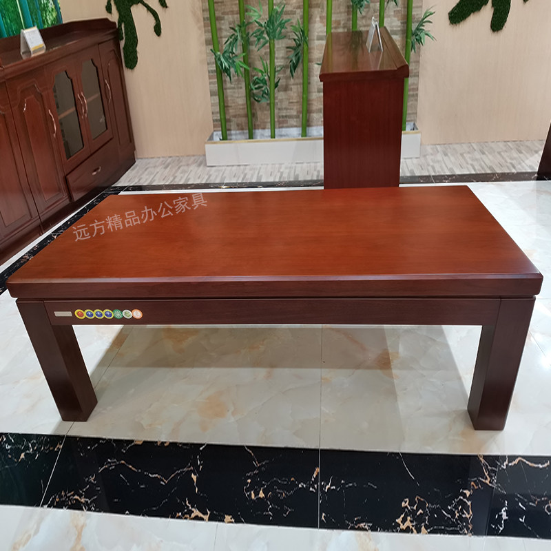 Office paint solid wood leather coffee table reception 1 2 meters 1 4 meters 1 6 meters large double-layer tea table single-layer low table