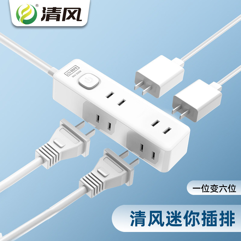 Breeze two-foot plug-in extension line socket with line flat hole 2-pin plug thin line extension line 1 5 meters small extension line