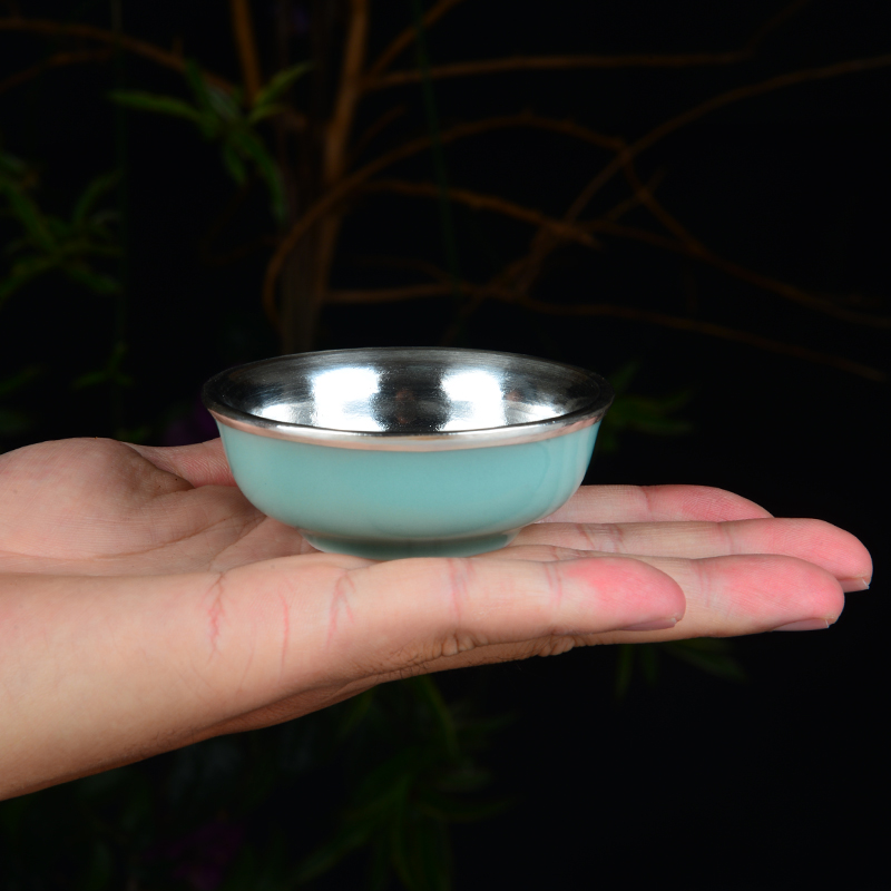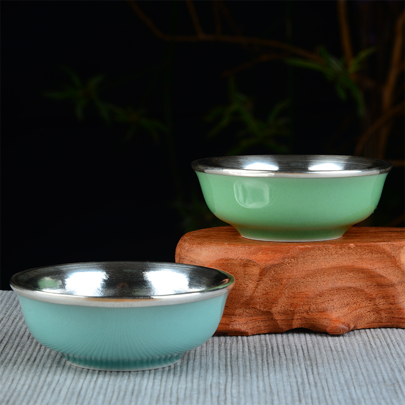 Sterling silver 999 foot silver cup pure handmade silver cup master cup wallet porcelain tea cup anti-scalding porcelain sterling silver office