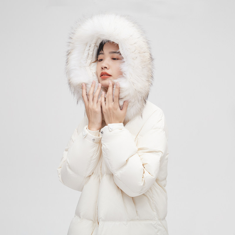 Ailey New Pint Temperament Duvet Clothing Women's Winter Exploits White Duck Suede Long fur collar Fashion popular foreign air jacket-Taobao
