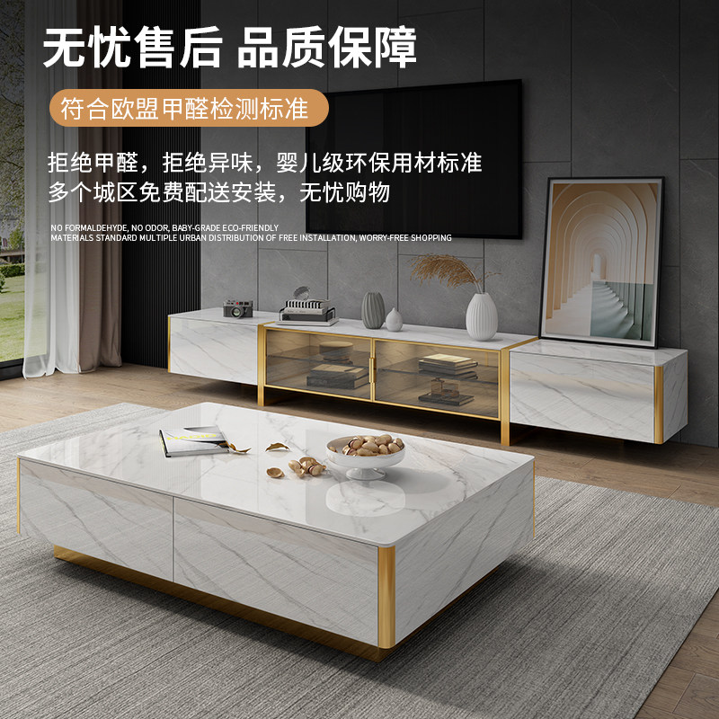New Italian-style light luxury all-rock board coffee table TV cabinet modern minimalist high-end designer home living room