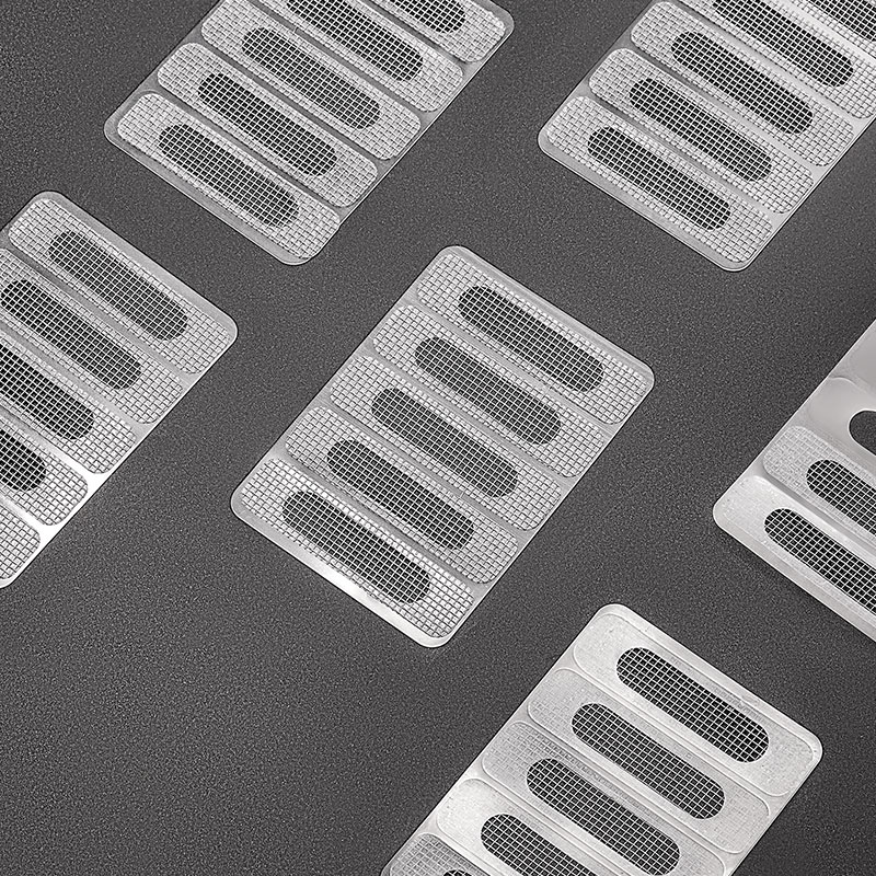Mosquito stickers for running water holes in screen windows (5 photos with 25 stickers)
