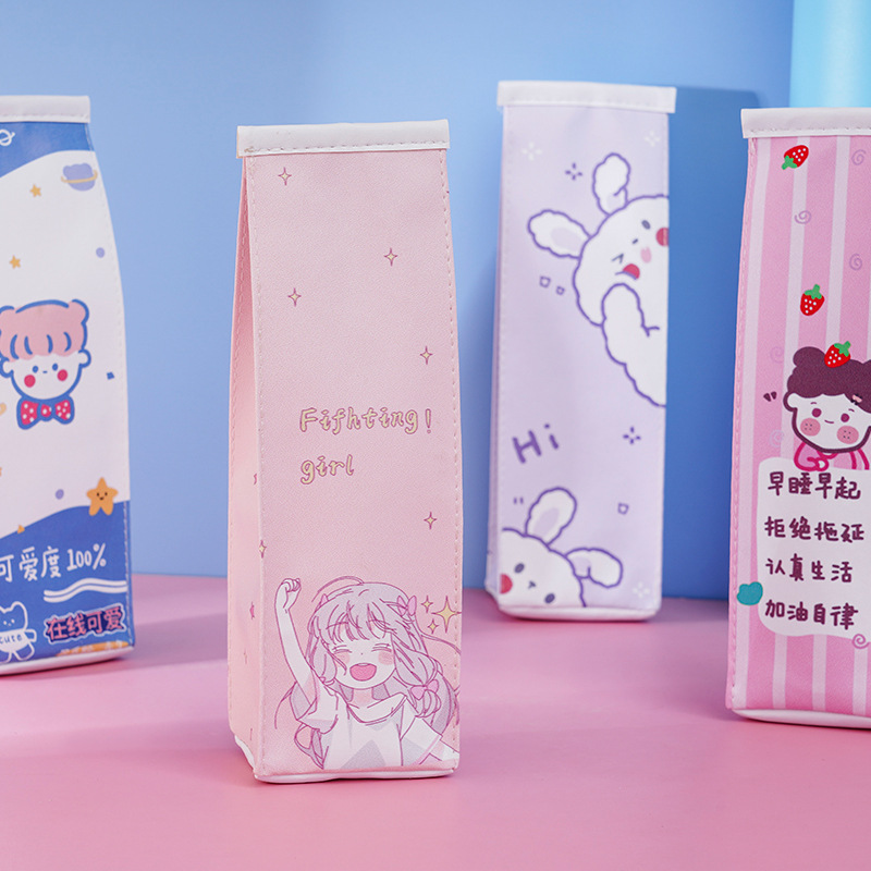 Cute cartoon milk box pencil case Korean creative large-capacity male and female student stationery box simple pencil case funny Japanese net red girl heart student small fresh pencil case creative personality stationery bag