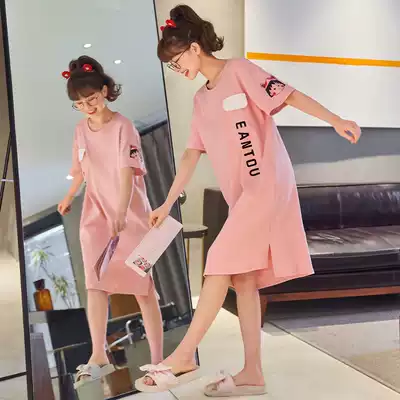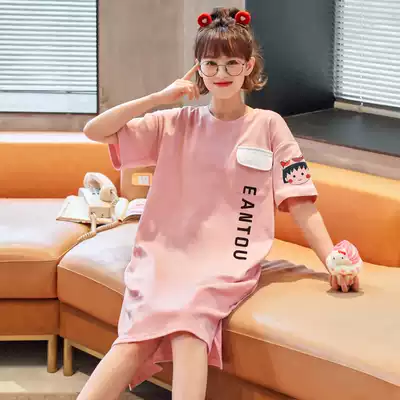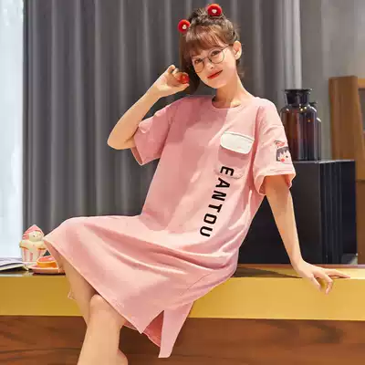 Pure cotton night dress female summer Korean spring and autumn student home clothes cute thin short-sleeved loose pregnant women pajamas summer