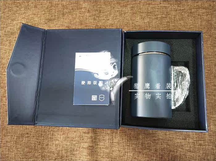 Gift box tea cup water cup navy blue thermos cup 304 stainless steel handle cup office tea cup water cup