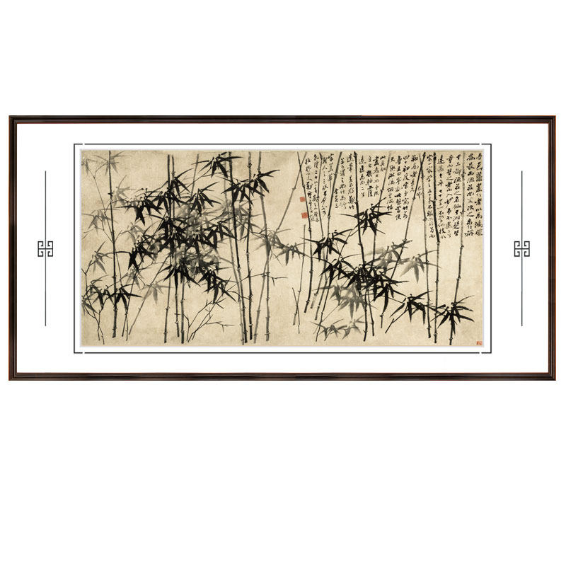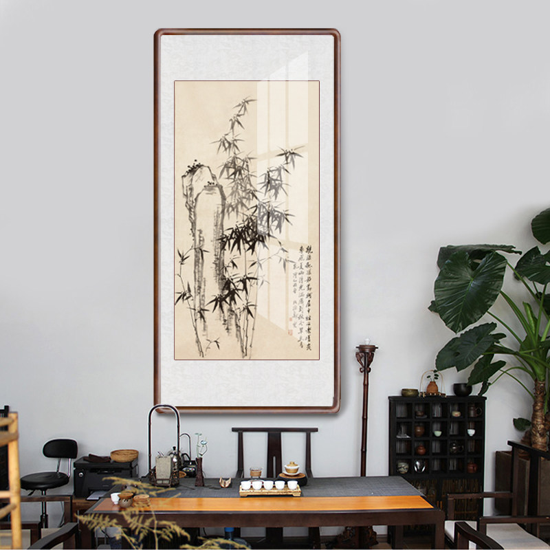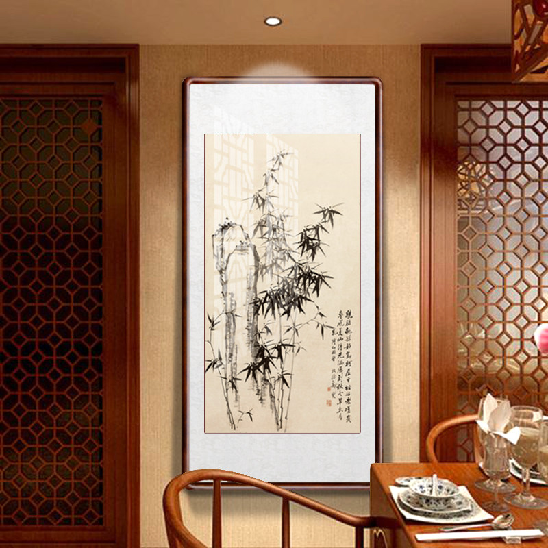 Zheng Board Bridge Bamboo Hanging Paintings of Chinese Living Room Book Room Decoration Painting Bamboo Newspaper Ping An Upscale Wall Character Painting with frame
