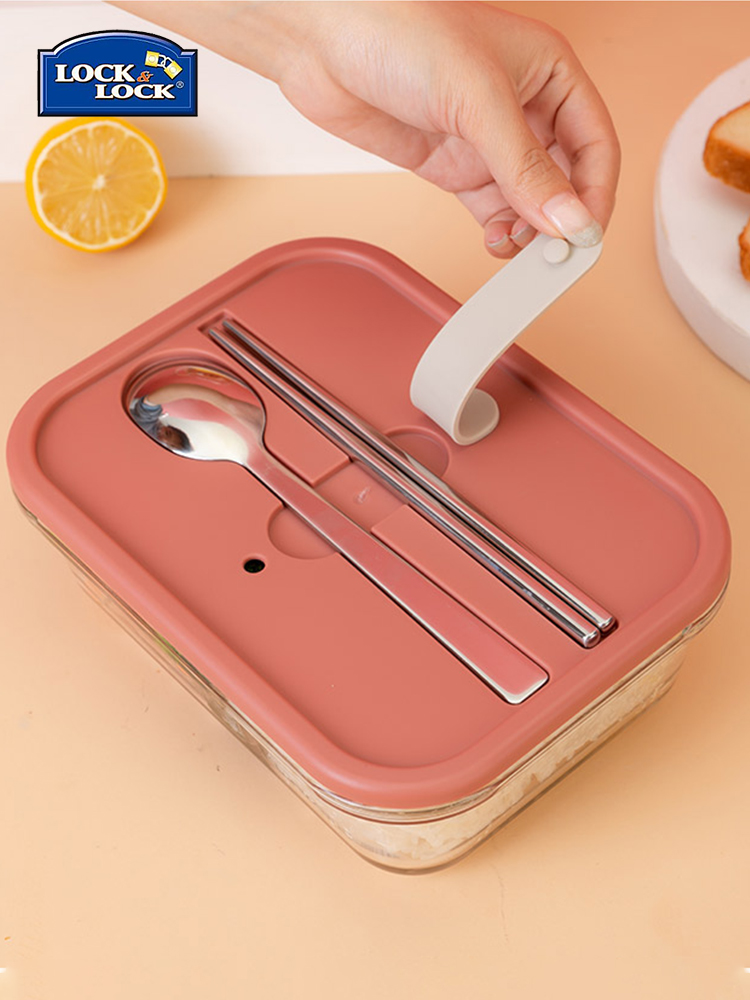 Music buckle glass refreshing box separation with cutlery with lunch box microwave water fruit box office lunchbox 930ML