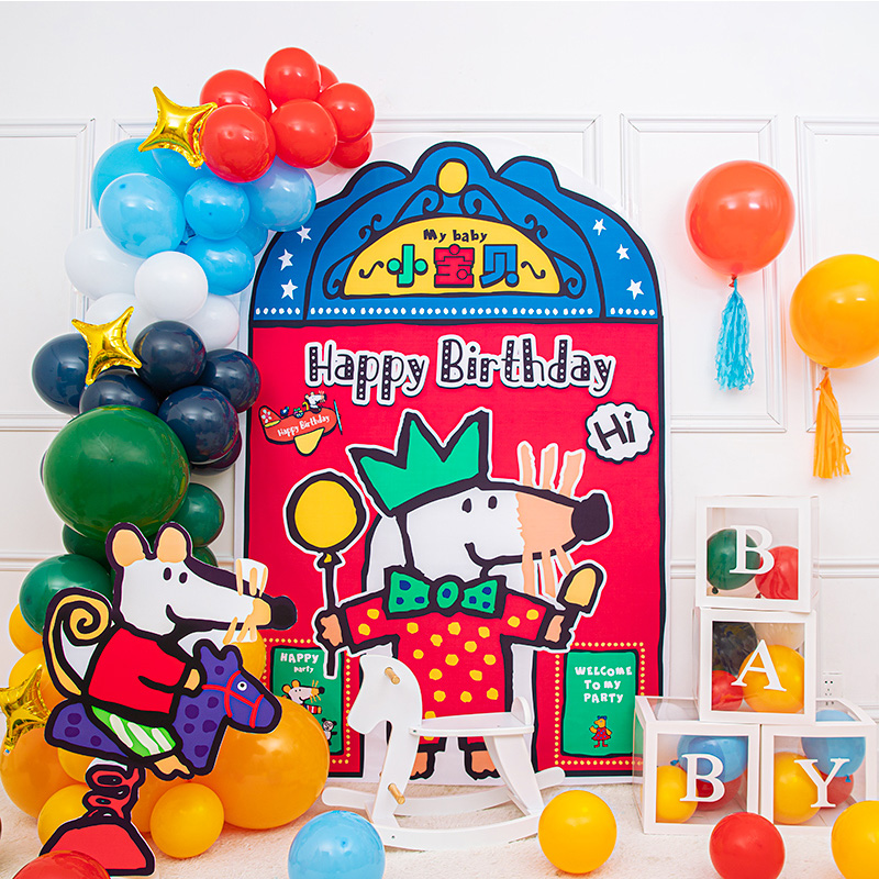 Mouse Wave Children's birthday Topic week-old 100-day rat Baby Balloon Party Arrangement Background Wall Decoration