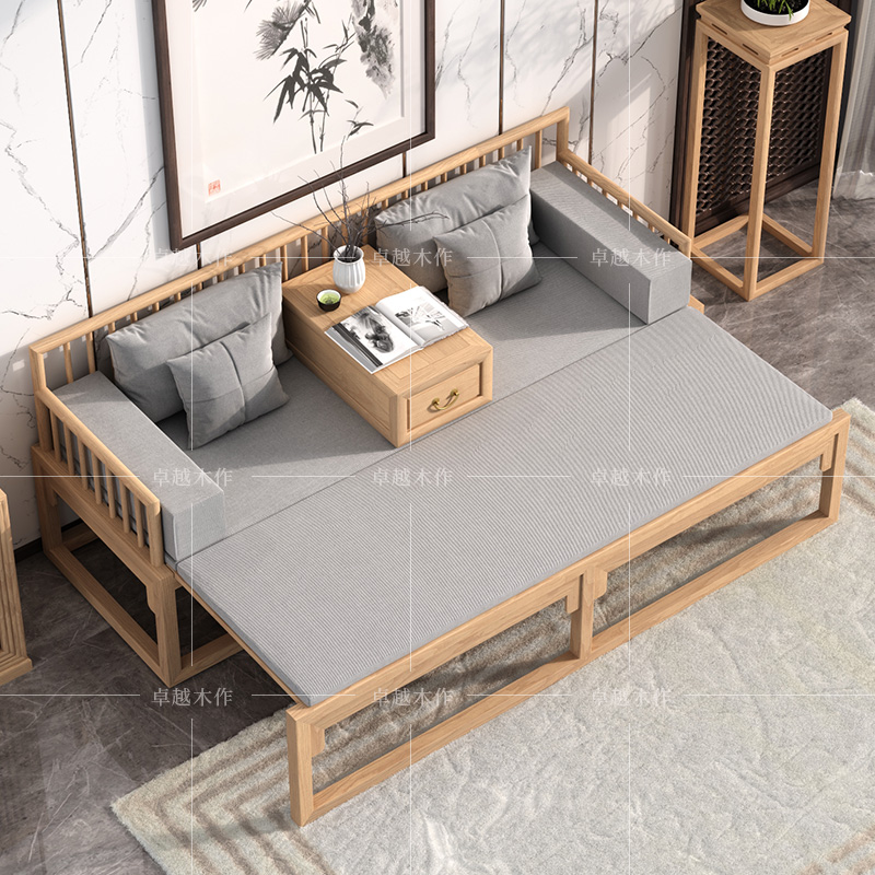 New Chinese solid wood Arhat bed tenon and tenon retractable famous sofa bed modern minimalist small apartment ash bed