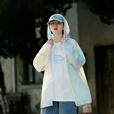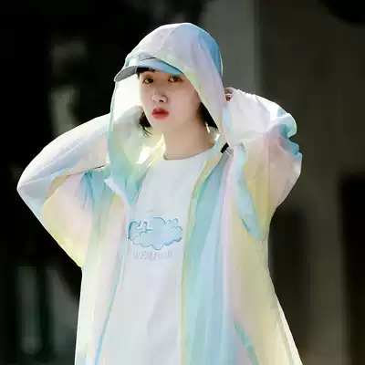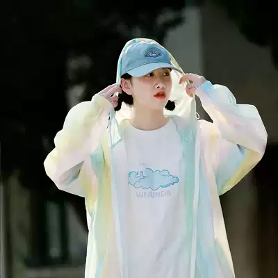 Summer sunscreen women's hooded breathable thin coat student couple trend casual gradual jacket loose BF wind