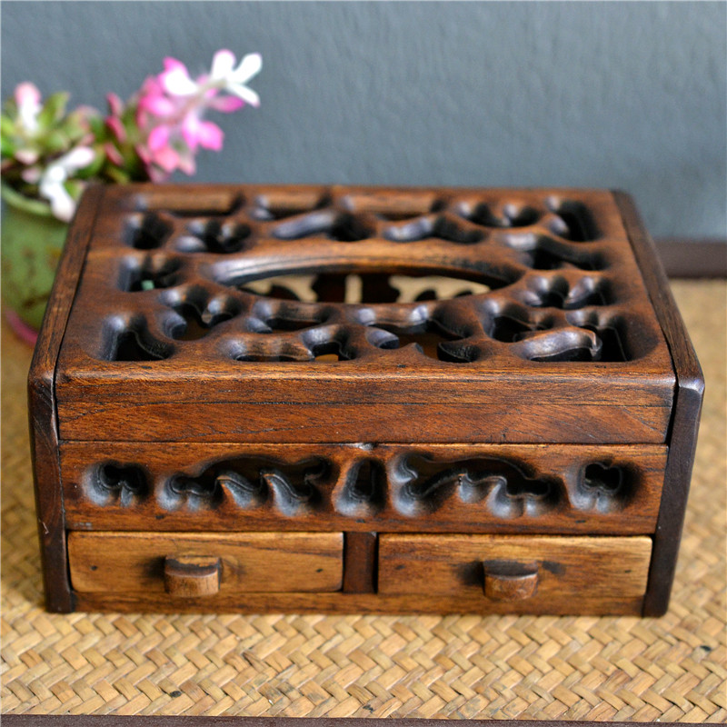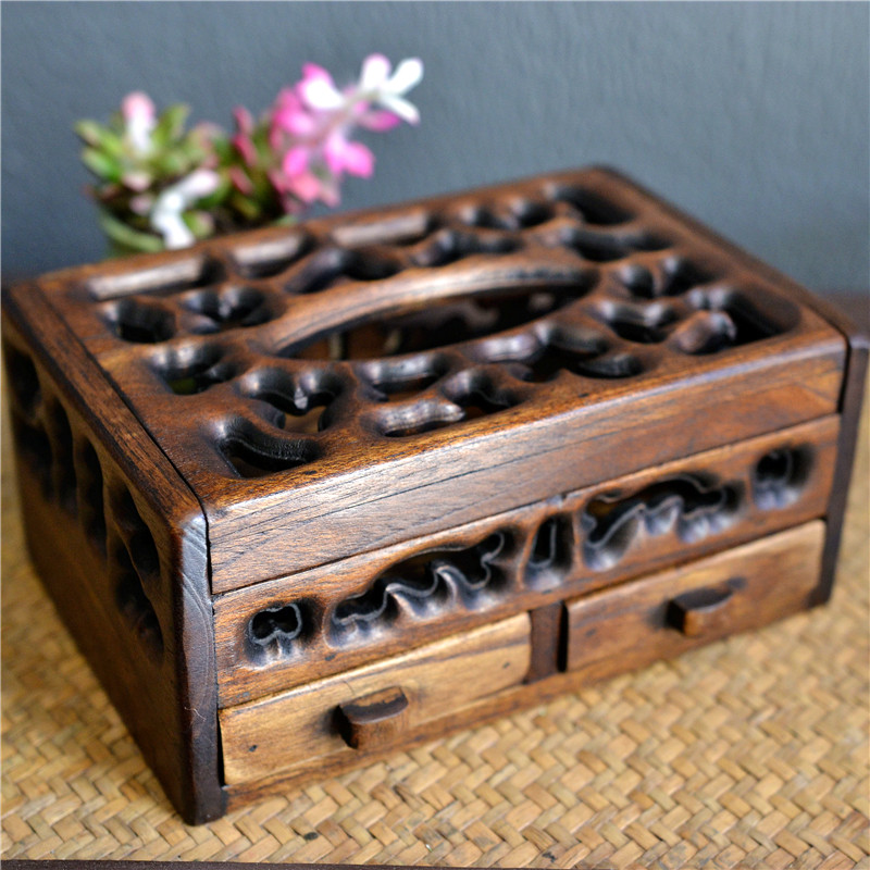 Thailand imported solid wood home accessories toilet paper box living room decoration multifunctional tissue box with drawer creative retro