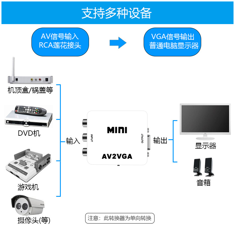 AV to VGA high-definition conversion (standard) AV transfer VGA high-definition conversion (standard AV wire) AV to VGA high-definition conversion (standard VGA line) AV transfer VGA