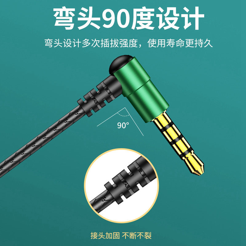Headset wired semi-in-ear elbow with wheat round hole 3.5mm crooked head unblocked mobile phone game eat chicken special L-type right angle 90 degree in line computer notebook single hole headset two-in-one