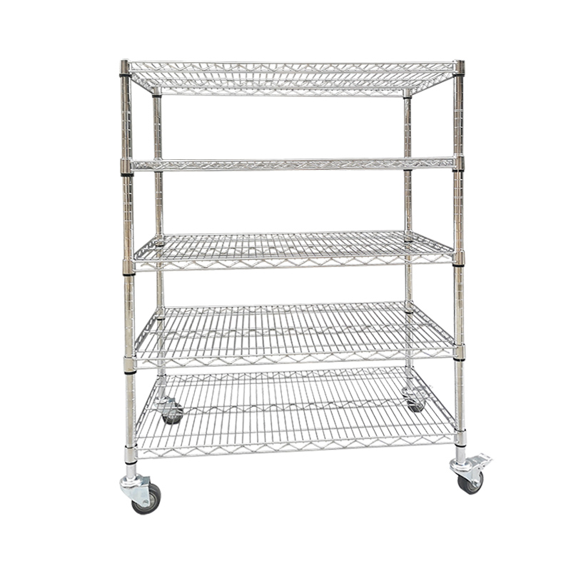 Customized chrome plated mobile shelf anti-static belt wheel shelf warehouse material shelf adjustable
