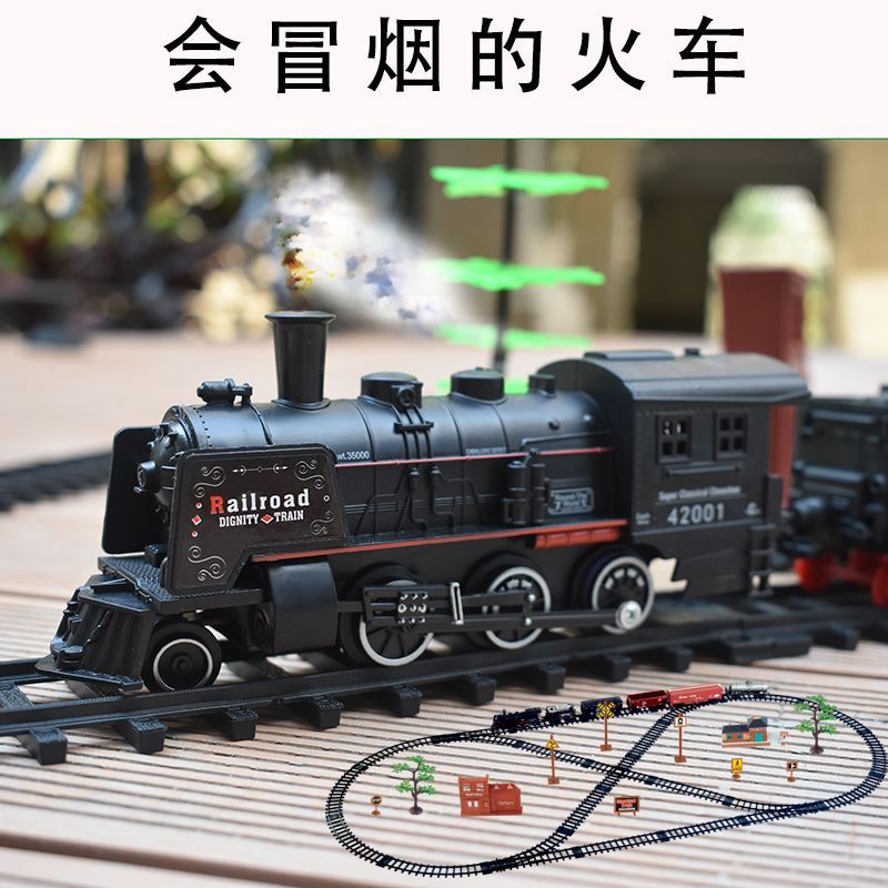 Super long train toy children with track large high-speed rail steam green leather rail car simulation model large Changming