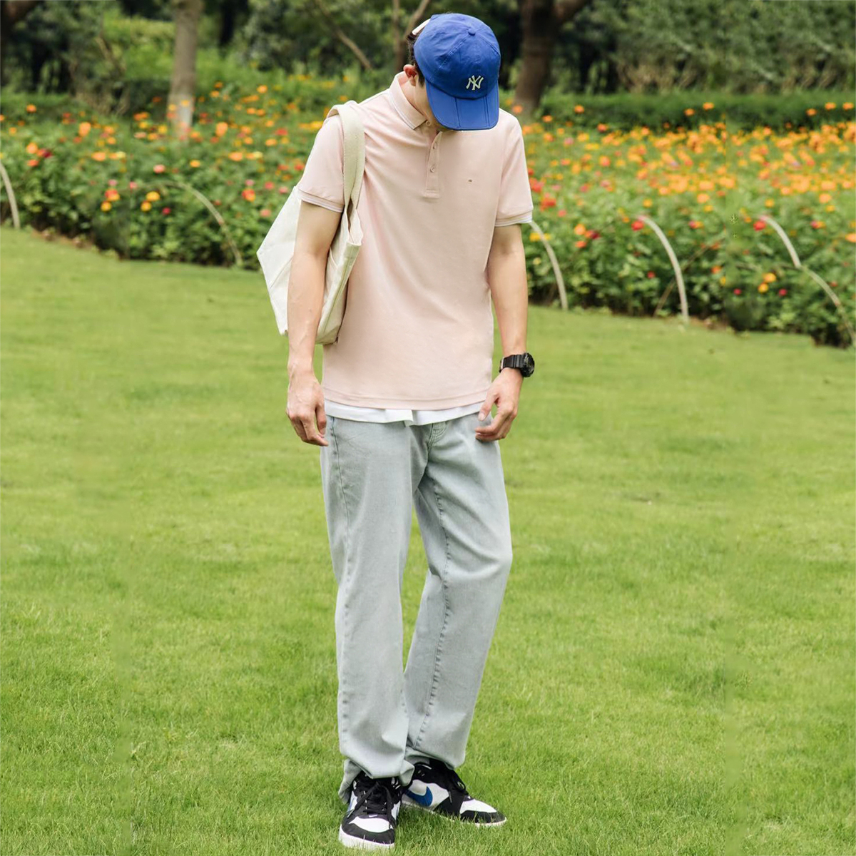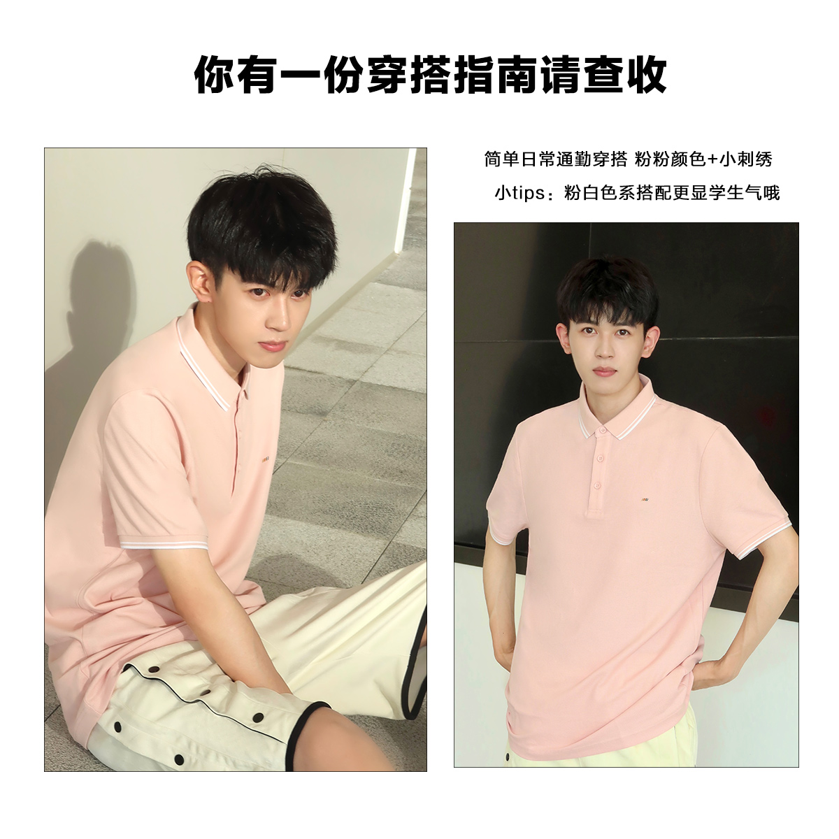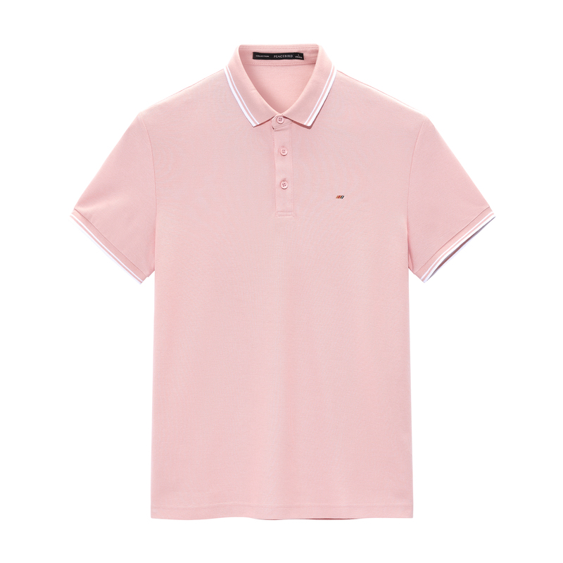 Peacebird Men's Summer New Pink Embroidered Korean POLO Shirt B1DBB2426