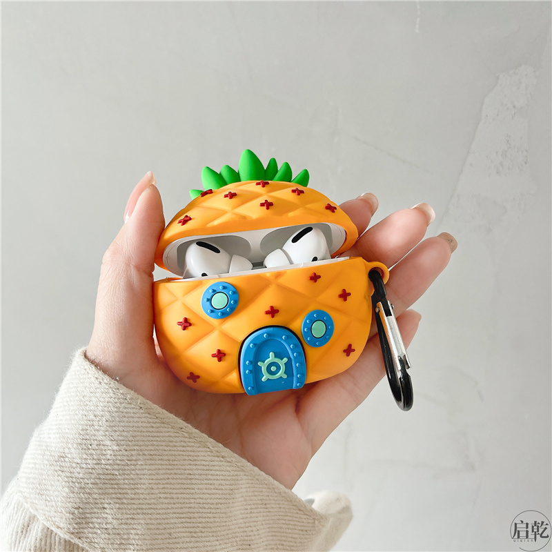Sponge baby pineapple house airpods protective shell cover 2 generation 3pro Soft silicone gel Applicable to Apple Wireless Bluetooth headphones One 23 1 Gen Starter Boom Card Personality Creative Cartoon Couple Ladies
