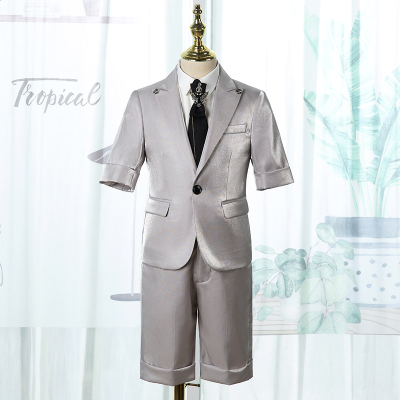 Boys suit summer short-sleeved children's dress flower girl small suit host costume catwalk piano performance costume - Taobao