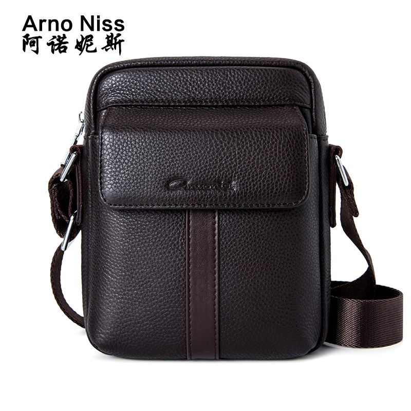 Anonise men's single shoulder bag genuine leather skew satchel small male Baotou layer Bull Leather Trumpet Vertical business Little Shoulder Bag