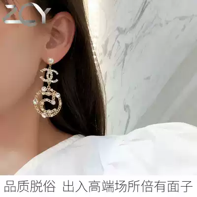 Light luxury earrings 2021 heavy industry custom double c earrings senior celebrity atmospheric fashion retro round face temperament earrings