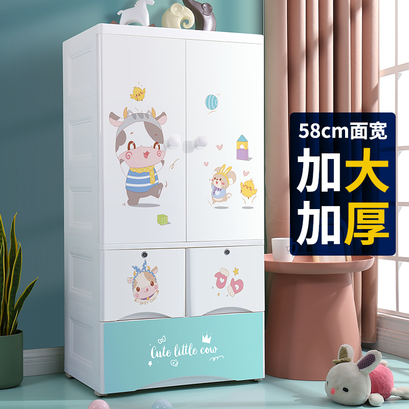 Increased Child Wardrobe Baby Baby Little Closet Minima Bedroom Boy Containing Cabinet Plastic Double Door Hanging Wardrobe