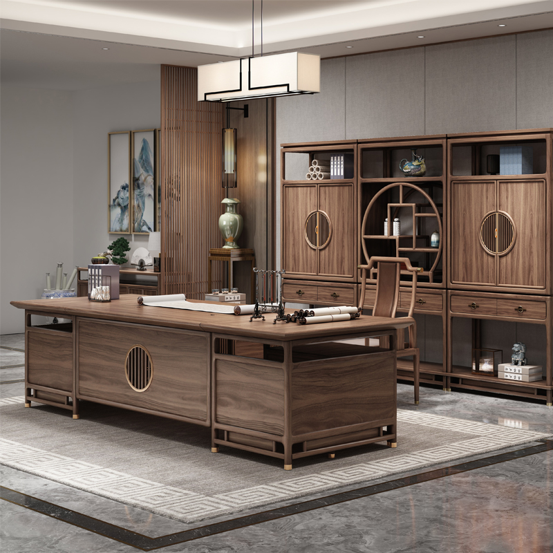 New Chinese solid wood boss table desk chair combination brief supervisor table big class desk manager table office furniture