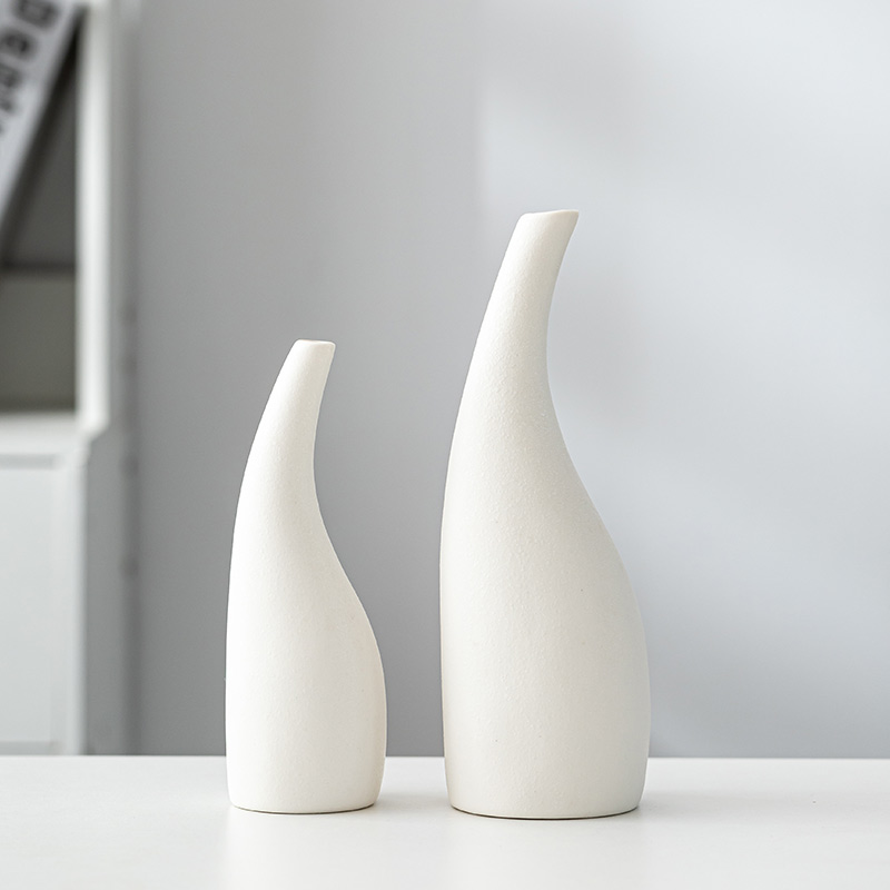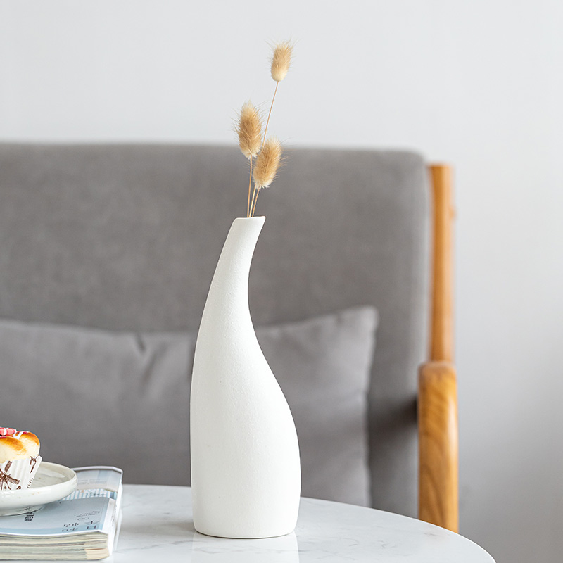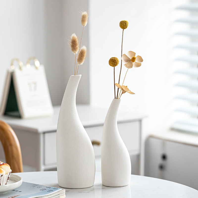 Japanese-style small-caliber vase modern minimalist art niche white ceramic dry flower porch living room decoration ornaments