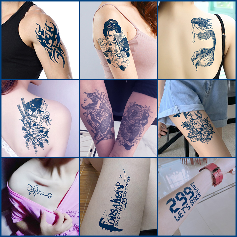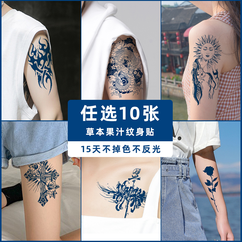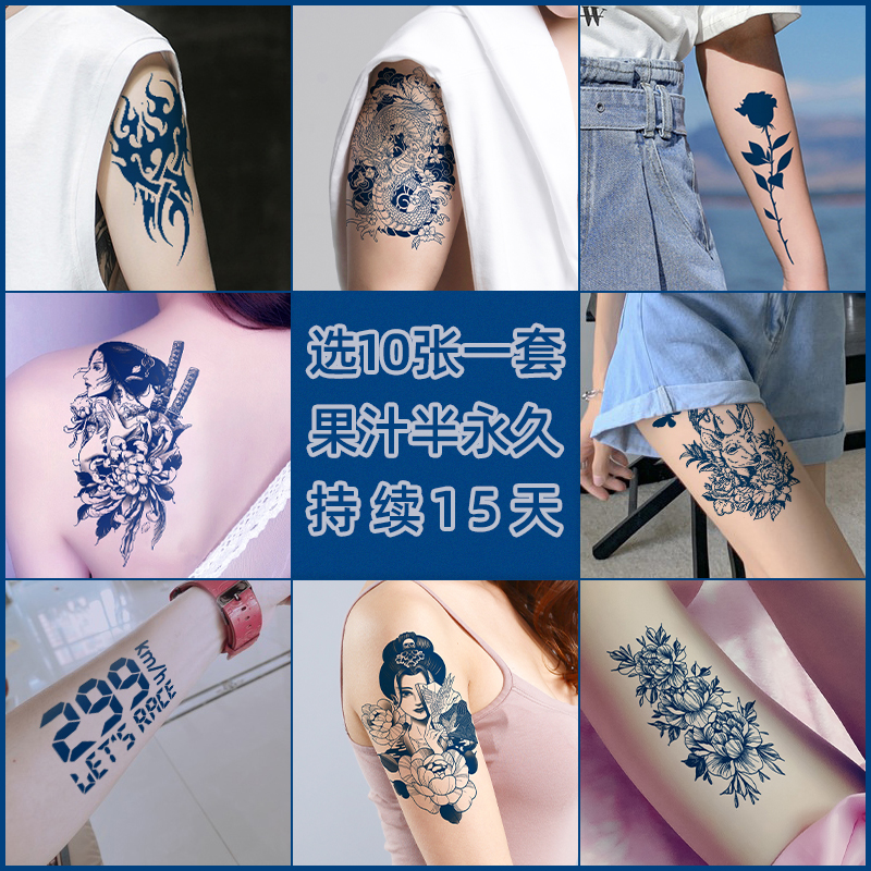 Non-reflective herbals tattooed with persistent female juices straw wood semi-permanent tinged green emulated stickers for male waterproofing stickers