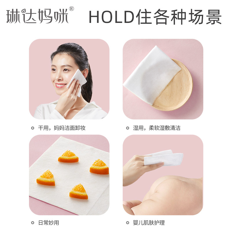 Linda Mummy baby cotton soft cotton soft and dry and wet double-use paper towel baby freshman special wiping ass 4 packs 100 pumping