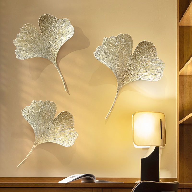 New Chinese Living Room TV Background Wall Decorative Dining Hall of Ginkgo Leaf Iron Art Wall Decoration Pendant Genguan Wall Hangings
