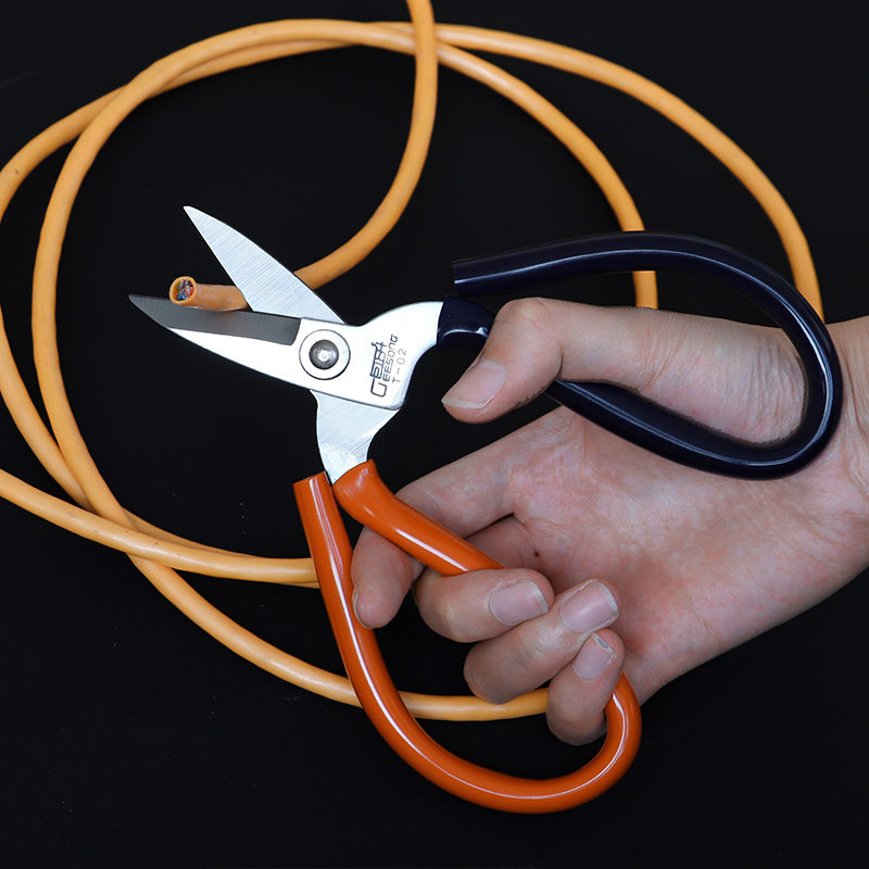 Juzhengsheng strong short-mouthed tin shears industrial shears iron scissors cable household scissors electrical multifunctional scissors
