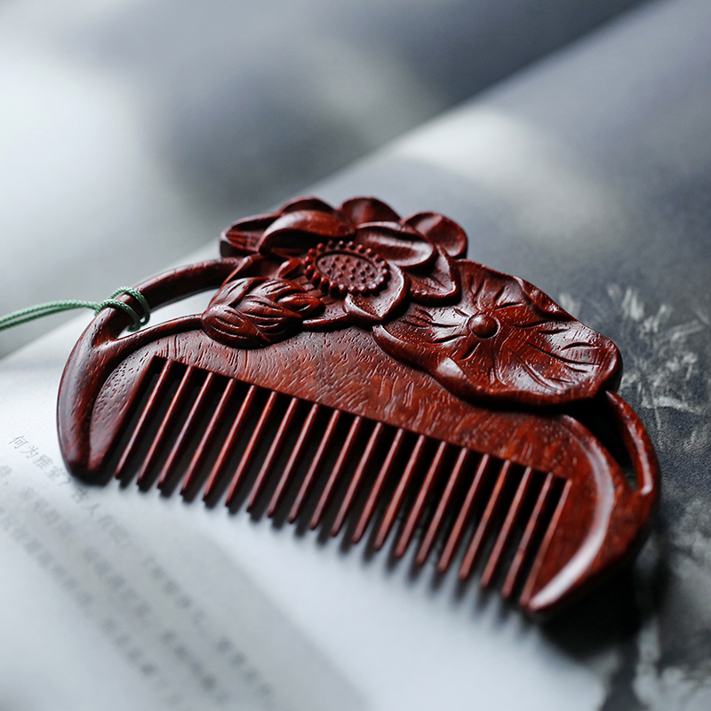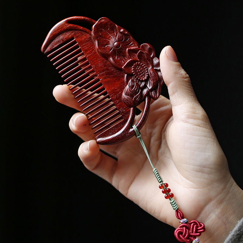 Lotus Comb India Small Leaf Purple Sandalwood Comb Lotus Red Wood Comb Send Mom Girlfriend Gift Custom Lettering 0135