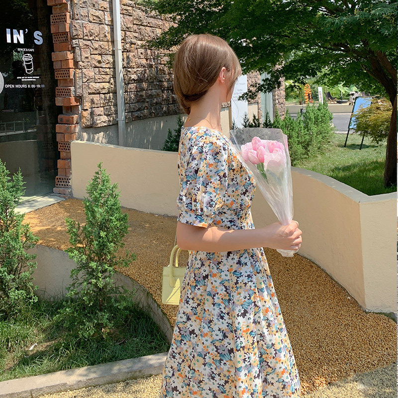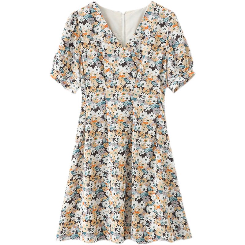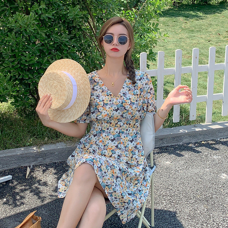 Big size dress for summer clothes 2022 New micro-fat younger sister mm Conspicuia Slim-to-the-age V Collar Crushed floral dress