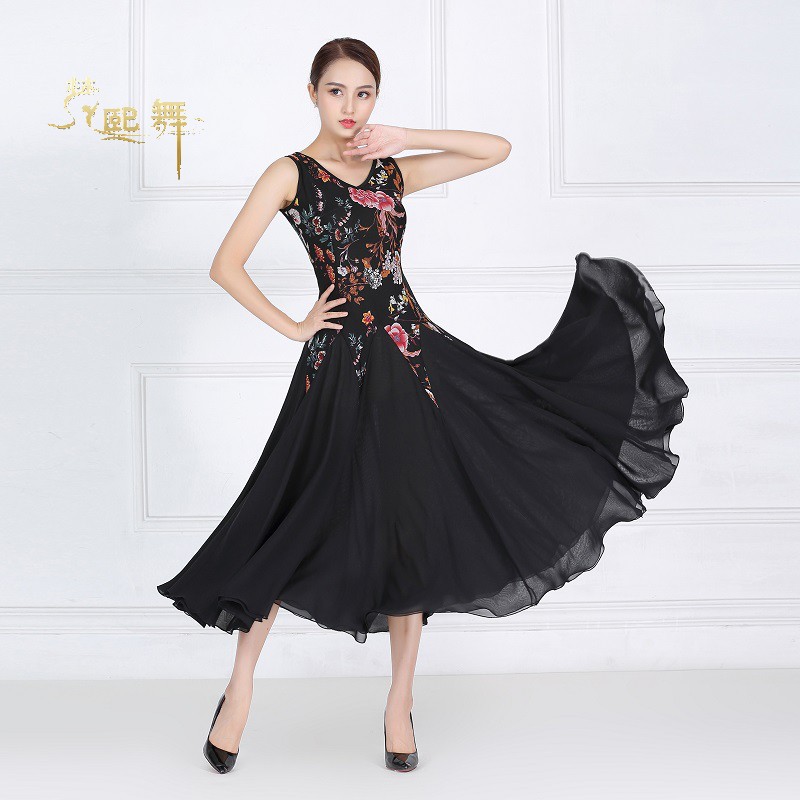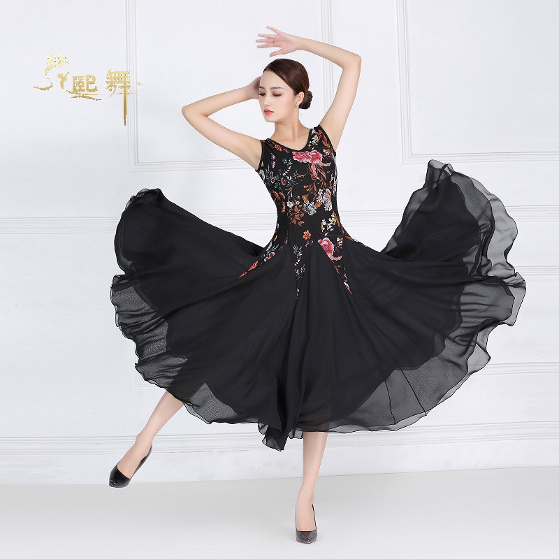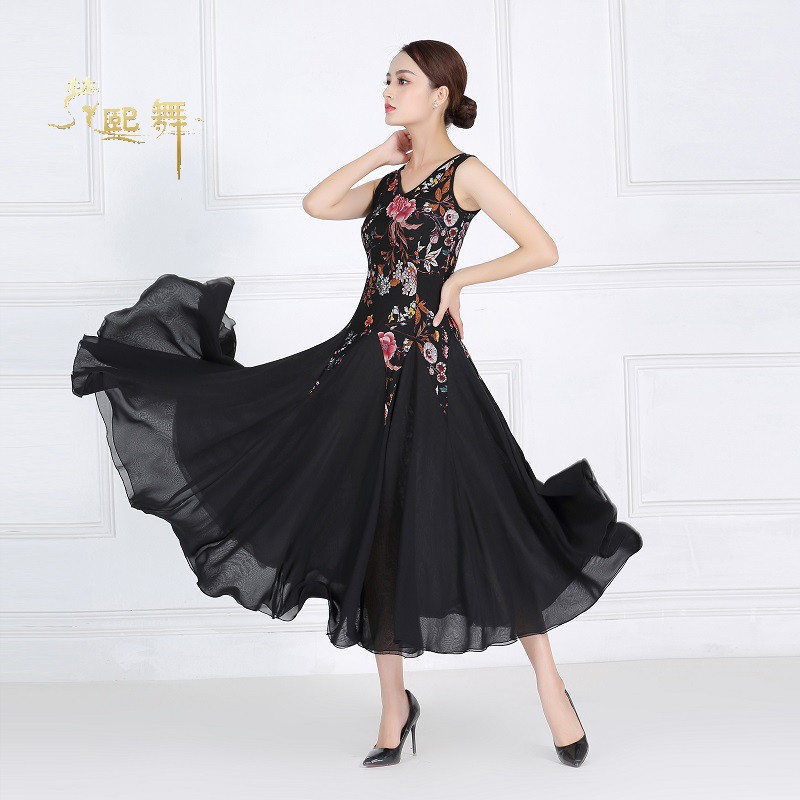 Tango Black Morden Dance Dress Square Dance 2022 New Summer Dress Dancing Skirt Sleeveless Snowspun Long Dress