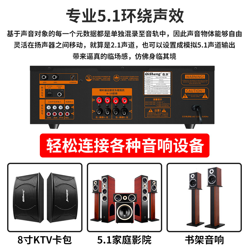 Qisheng Qisheng new professional high-power Bluetooth home amplifier KTV stage bass hifi fixed resistance karaoke amplifier 2 1 public amplifier AV