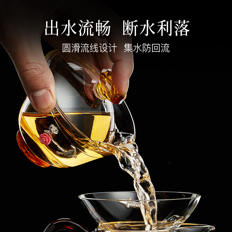Longshan Hall Cover Bowl Glass Pure Hand Inlaid Silver Tea Bowl Kongfu Tea With Tea Bowl Home Single Triple Bowl Heat Resistant
