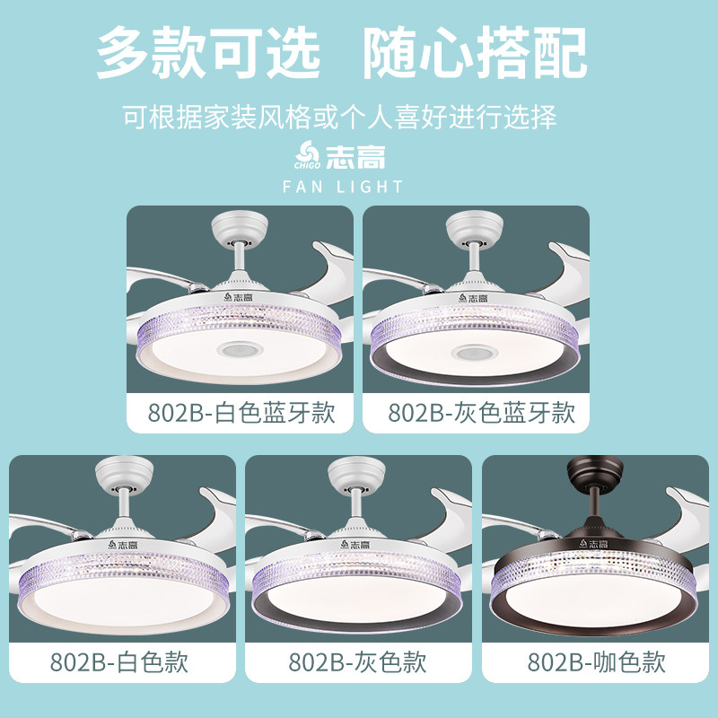 Zhigao ceiling fan lamp Nordic modern minimalist wind frequency conversion large wind room dining room dining room Invisible Ceiling Fan lamp