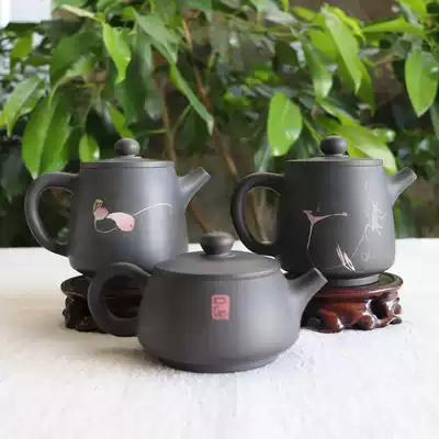 Yunnan Jianshui Purple Pottery tea maker Kung Fu tea set handmade single pot famous Chen Quan decorative black pottery high mouth stone scoop
