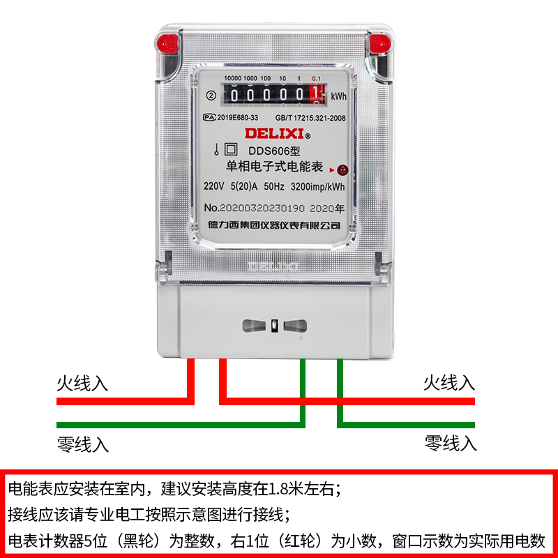 Household single-phase meter 1 5 *(6)A maximum power 1 32KW