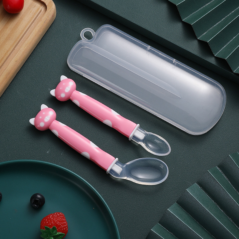 Baby cartoon spoon set silicone soft head spoon elbow spoon combination set baby tableware pp box