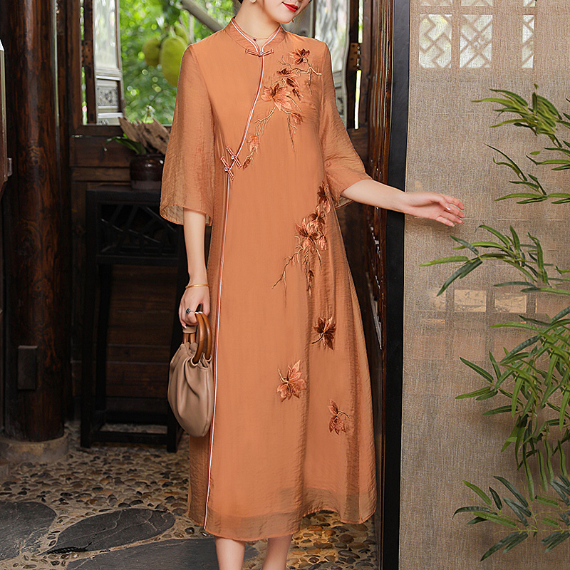 Improvement of the qipao 2021 New summer retro Chinese style Chinese tea art Zen clothes large size for national wind and ocean clothing