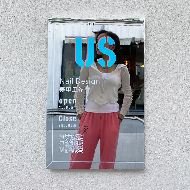 Korea ins stainless steel mirror advertising plaque custom net red shop LOGO signboard photo punch card Xiaohongshu clothing nail art coffee shop business hours sticker wall display card mirror personality