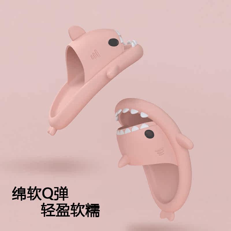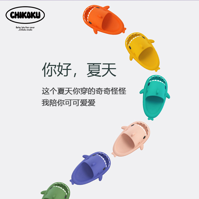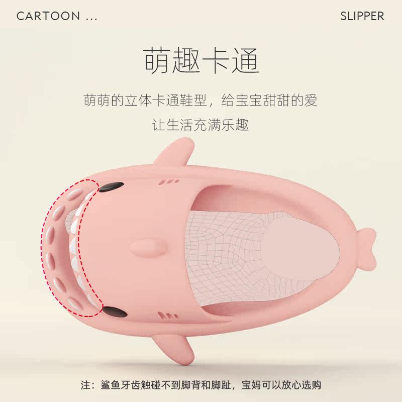 chikoku Korean slippers parent-child family of three indoor non-slip soft bottom sandals cartoon shark slippers female summer